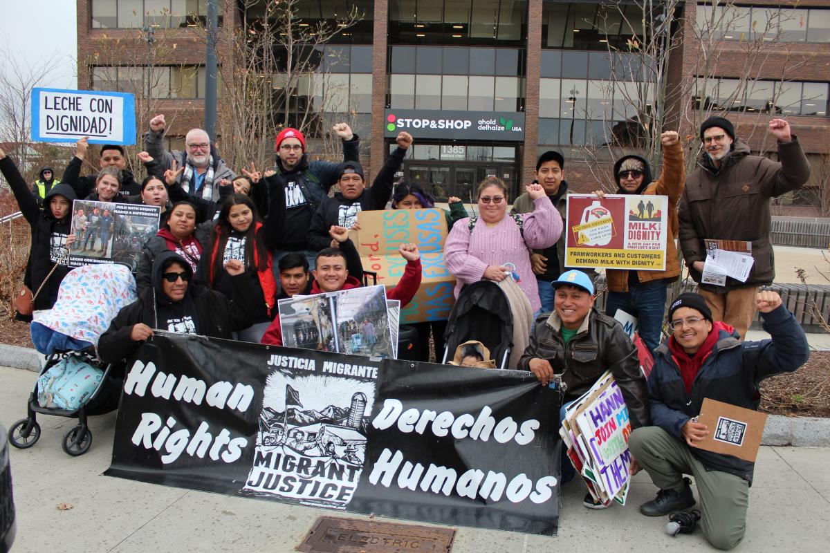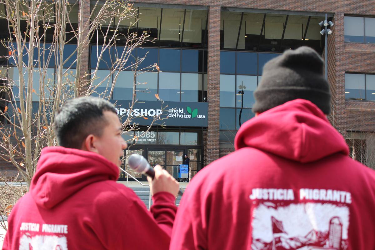 Farmworkers and allies gathered in front of Ahold USA headquarters, also home to Ahold subsidiary Stop & Shop