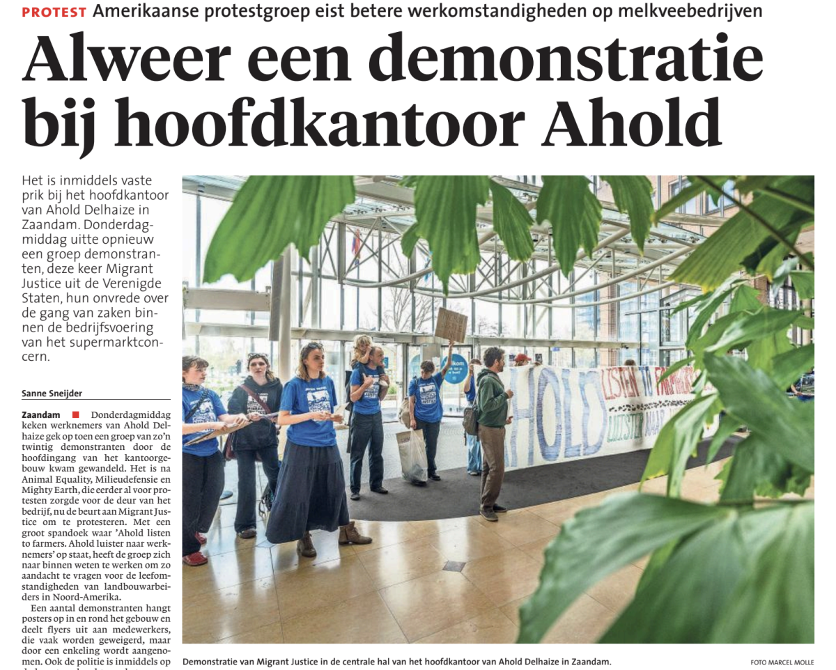 Dutch press covered the actions in The Netherlands, bringing the Milk with Dignity campaign to a new audience and increasing the pressure on Ahold in their home country